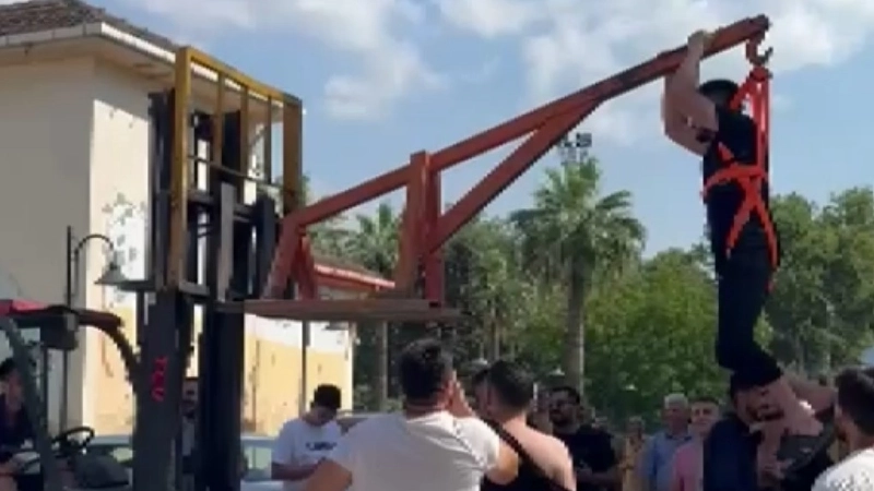 İznik ilçesinde çiftçilik ile uğraşan Hasan Bafralı, Rumeysa Çakıroğlu ile dünya evine girdi. Damadın arkadaşları tarafından yapılan şakalar ‘Bu kadar da olmaz' dedirtti. Gelin alma sırasında damat Hasan Bafralı'nın arkadaşları, önce damadı forklifte astı, ardından bahçe hortumu ile yıkayıp su dolu bidona soktular. Damada yapılanlar bununla da kalmadı. Başında yumurta kırılan damat, ardından gelin arabasını urganla çekti. Üzerine un atılan damada damacana ile su döküldü.Damadın arkadaşları bunlarla da yetinmeyerek, Bafralı'nın üstünü yırttı, ağzına emzik vererek oyunlar oynattı. Damat elleri ile geline kahve yapıp ikram etmeyi de ihmal etmedi. Gelin alma geleneğinin ardından akşama yapılan düğünle genç çift dünya evine girdi.