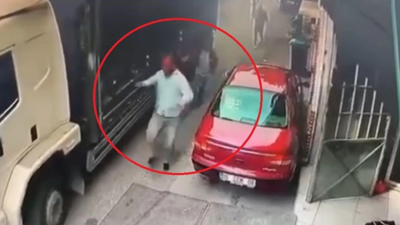 Kısa süre sonra hareket eden kamyonu gören vatandaşlar, duruma el attı. Duyarlı bir vatandaş ise kamyonun kapısını açarak el frenini çekti.