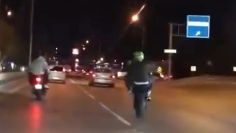 Edinilen bilgiye göre, merkez Nilüfer ilçesi İzmir Yolu Caddesi üzerinde motosiklet sürücüsü ön kaldırarak seyretmeye başladı. Bir süre bu şekilde giden motosiklet sürücüsü diğer sürücülerin yüreklerini ağza getirirken bir sürücü o anları kayda aldı.Diğer bir görüntü ise motosiklet sürücüsü yakıt deposunun üzerine oturarak seyretti. İki motosiklet sürücüsü ara sokaklara girerek gözden kayboldu.