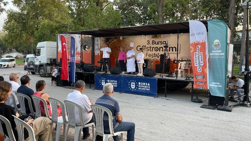 Bursa’nın sahip olduğu zengin mutfak kültürünü turizme kazandırmak ve dünyaya açmak amacıyla Büyükşehir Belediyesi tarafından ‘Damağımdaki Bursa’ temasıyla düzenlenecek olan 3. Gastronomi Festivali’ne 13-14-15 Eylül tarihlerinde Merinos Park ev sahipliği yapacak. Bu yıl uluslararası katılımla gerçekleşecek Festival, konserler, yarışmalar, ünlü şeflerle söyleşiler gibi birbirinden renkli içerikleriyle Bursalılara unutulmaz bir deneyim yaşatacak. Lezzet şöleninin heyecanı ise ‘Gastronomi Tırı’ ile günler öncesinden kenti sardı. Festival öncesinde Bursa’nın lezzetlerini ilçelerle buluşturmak ve Bursalıları festivale davet etmek amacıyla Büyükşehir Belediyesi iştiraklerinden Kültür AŞ tarafından hazırlanan ‘Gastronomi Tırı’, bugüne kadar Osmangazi, Mustafakemalpaşa, Nilüfer, Keles, Orhangazi, Karacabey ve İnegöl’e uğradı. Şef Dr. Esat Özata ve usta şefler tarafından Bursa’nın tescilli lezzetlerinin hikayelerinin anlatıldığı, püf noktalarının gösterildiği buluşmalara, Büyükşehir Belediyesi Başkanvekili Mehmet Aydın Saldız, Dış İlişkiler Dairesi Başkanı Pınar Işıkyıldız, Bursa Kültür AŞ Genel Müdürü Yankı İçöz katılırken vatandaşlar da yoğun ilgi gösterdi. Damaklarda unutulmaz tatlar bırakan tescilli lezzetleri tatma imkanı da bulan Bursalılar, Büyükşehir Belediyesi Orkestra Şube Müdürlüğü ve Şef Dr. Aysel Gürel Gastro Müzik Korosu konserleriyle de eğlenceli anlar yaşadı.