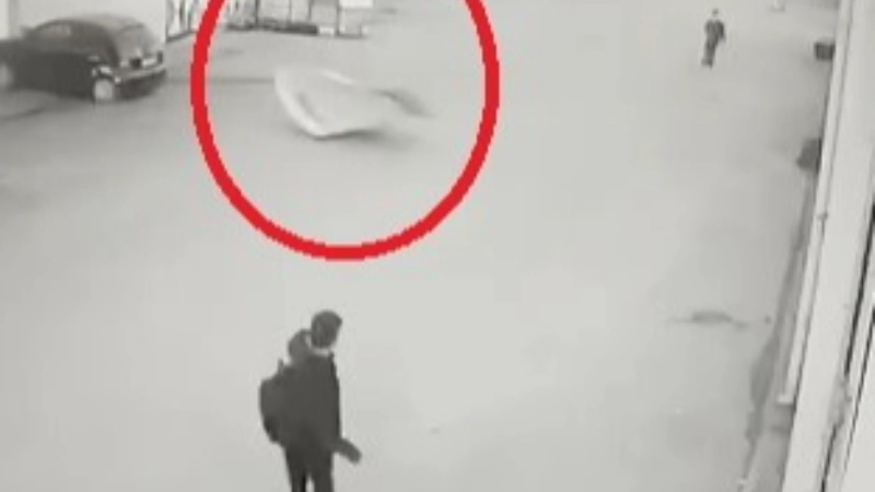 Edinilen bilgiye göre, dün geceden itibaren kent genelinde etkili olan lodos sabah saatlerinde de devam etti. Yer yer saatteki hızı 50 kilometrenin üzerine çıkan şiddetli rüzgar sabah saatlerinde işe gitmek isteyenler ile okula giden çocukları korkuttu. Merkez Yıldırım İlçesi Otosansit mevkiinde sabah evden okula gitmek için çıkan bir öğrencinin yürüdüğü sırada rüzgarın havalandırdığı çatı sacı küçük çocuğun hemen arkasına düştü. Saniye farkıyla kurtulan çocuk ne olduğunu anlamadan yoluna devam etti. O anlar çevredeki bir iş yerinin güvenlik kamerasına anbean yansıdı.