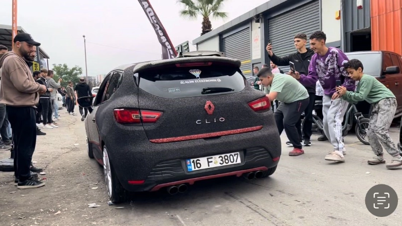 Açılan şarkılarla alanda adeta konser veren araç sahibi yüksek desibel nedeniyle de ön camı kırdı. Birçok vatandaşın dikkatini çeken araçlar kameraya yansıdı.