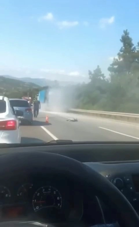 Olay, İnegöl-Bursa Yolu Dürdane Rampası üzerinde meydana geldi. Edinilen bilgiye göre, tır şoförü çıkan dumanları görünce emniyet şeridine park etti. Dumanlar bir süre sonra yerini alevlere bıraktı. Çevredeki vatandaşların ihbarı üzerine olay yerine itfaiye ve polis ekipleri sevk edildi. Yangın sebebiyle yoğun trafik oluştu. Yangın, itfaiye ekiplerinin müdahalesiyle söndürüldü. Yangında can kaybı meydana gelmezken, tırın dorsesinde maddi hasar oluştu.Öte yandan, yanan dorsenin çekilmesiyle beraber trafik normale döndü.