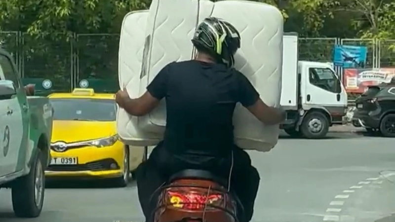 Yıldırım’da motosikletli iki kişi aralarına aldıkları yatakla trafiğe çıktı. İnsanlara aldırış etmeden yolculuğuna devam eden sürücü ayaklarının altına aldığı halıyla beraber can sağlığını hiçe sayarak yolculuğa devam etti. Amatör kameraya yansıyan görüntüler bu kadar da olmaz dedirtti.