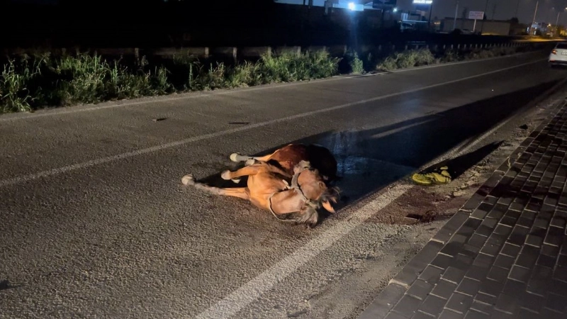 Bursa'da bir sürücü cadde üzerinde ilerlediği esnada karşısına çıkan başıboş ata çarpıp kaçtı. Ayakları kırılan atın yardımına belediye ekipleri yetişirken, yaralı at görenlerin yüreklerini dağladı.