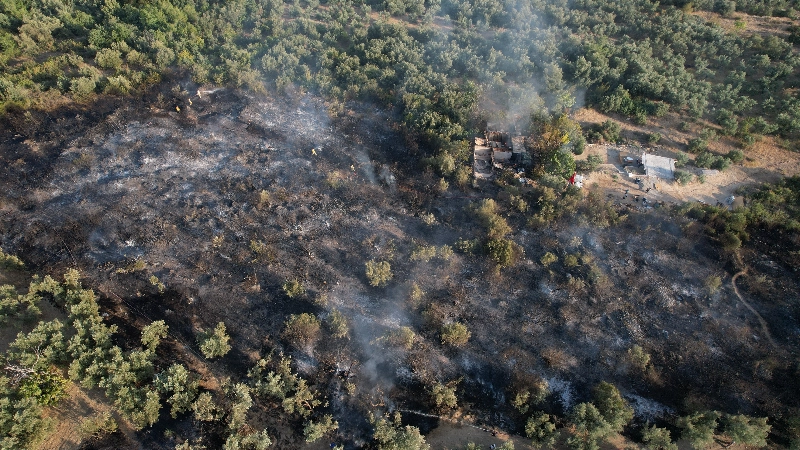 — ogastehaber (@ogastehaber) August 23, 2024Yangın, merkez Osmangazi ilçesi İsmetiye Mahallesi'nde meydana geldi. Edinilen bilgiye göre, barakada çıkan yangın kısa sürede zeytinlik alana sıçradı. Alevler zeytinlik alanda devam ederken ihbar üzerine bölgeye polis, Orman Bölge Müdürlüğü'ne bağlı arazözler ve itfaiye ekipleri sevk edildi. Yangın ekiplerin müdahalesi sonrası kontrol altına aldı. Yanan zeytinlik alan dron ile havadan görüntülendi.