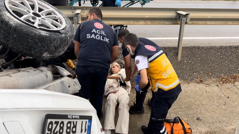 Kaza, Bursa-Yenişehir Yolu üzerinde meydana geldi. Edinilen bilgiye göre, R.B idaresindeki 11 RB 826 plakalı otomobil Yenişehir Havalimanı yakınlarında sürücünün direksiyon hakimiyetini kaybetmesiyle kontrolden çıktı. Araç bariyerlere çarpıp takla attı.
