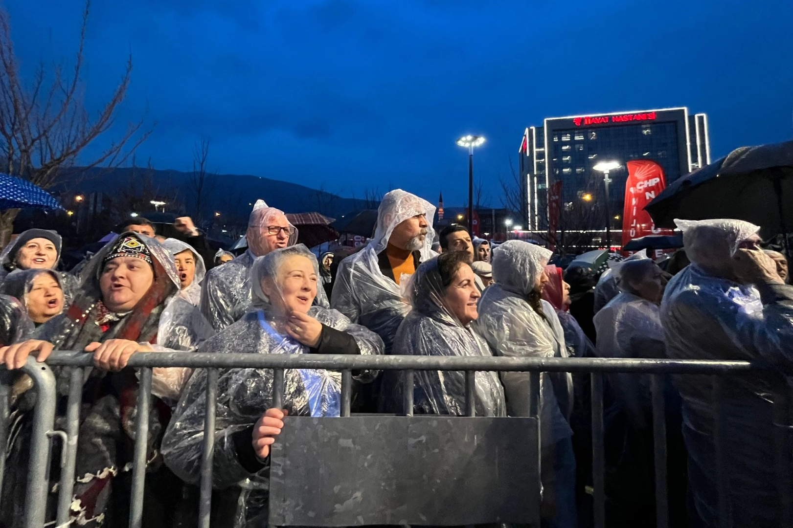 Gözaltına alınan Bursa Büyükşehir Belediye Başkanı Mustafa Bozbey'e destek için CHP İl Başkanlığının çağrısıyla Bursalılar iki gündür yağmur altında toplanıyor.