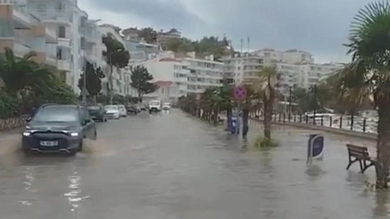 Bursa'nın Mudanya ilçesinde bir anda etkili olan yağmur, Mudanya Sahil yolunu göle çevirdi. Otomobillerin geçerken zorlandığı anlar anbean amatör kameraya yansıdı.
