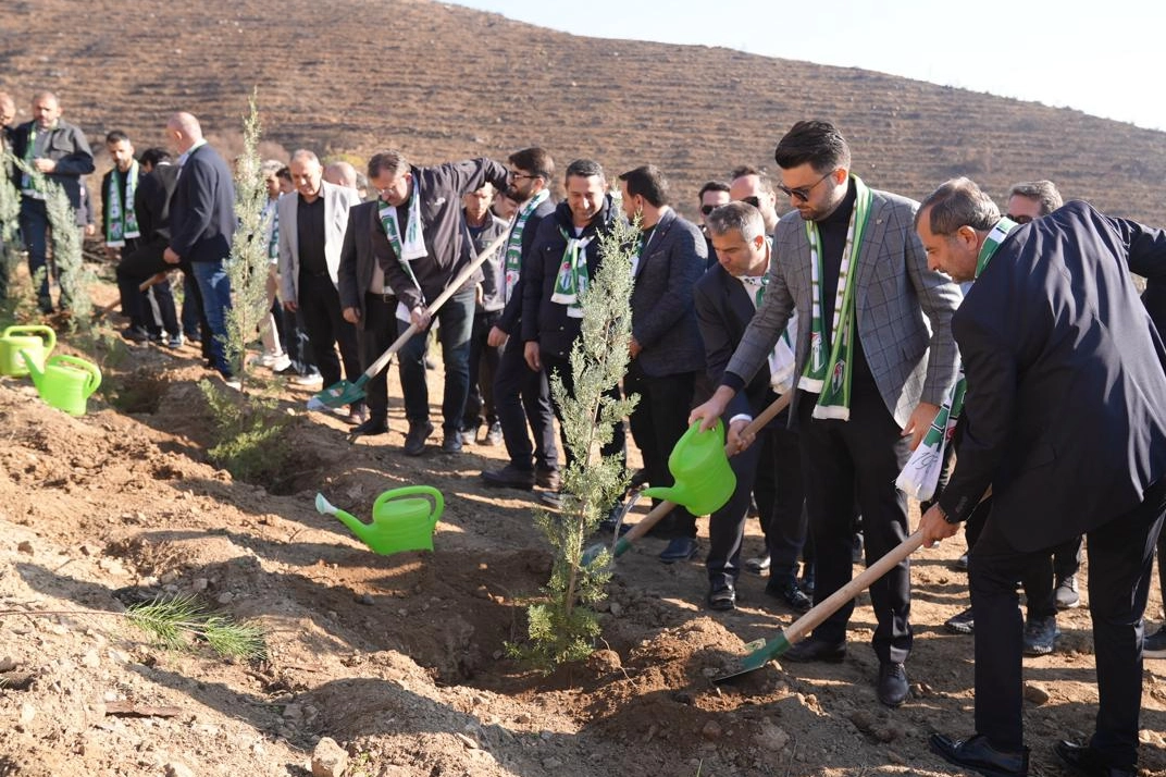 Bursaspor Kulübü Başkanı Enes Çelik, Teknik Direktör Tahsin Tam, Gürsu Belediye Başkanı Mustafa Işık ile beraber yeşil beyazlı futbolcular ile Uludağ Organize Sanayi yönetici ve iş insanları, Karahıdır ve İğdir bölgesinde yanan ormanlık alanlarda fidan dikimi gerçekleştirdi.