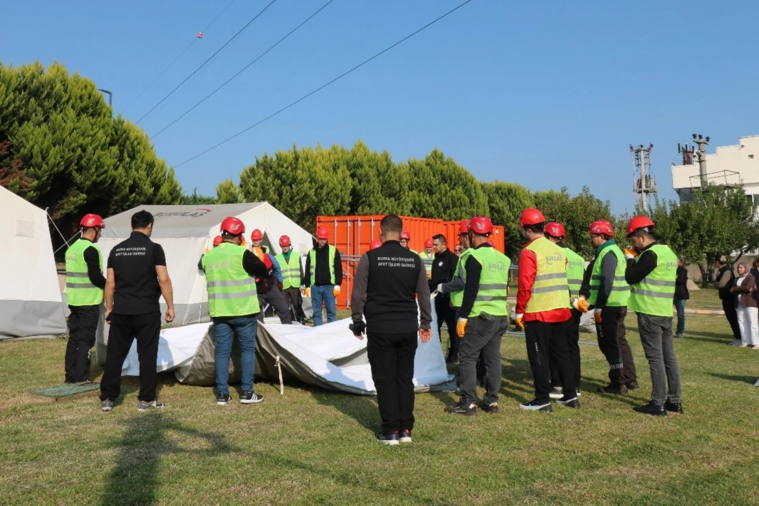 Bursa’da yaşanabilecek muhtemel bir afet olayı veya acil durum karşısında hazırlıklı olmak için tüm birim ve iştiraklerde çalışmalarını sürdüren Büyükşehir Belediyesi, son olarak BURULAŞ personeline yönelik çadır kurma eğitimi düzenledi.