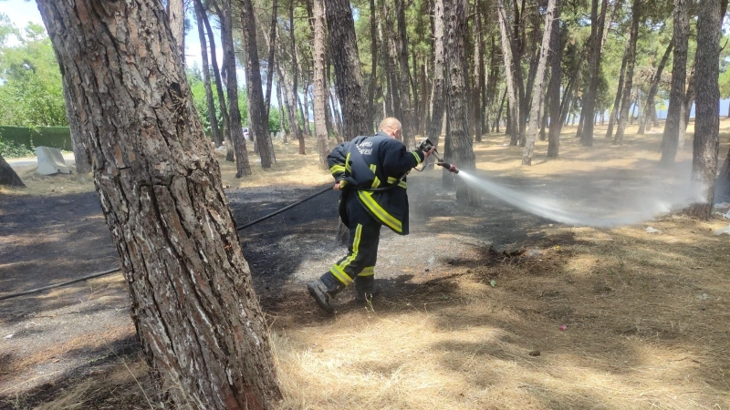 Yangın, saat 13.00 sıralarında Orhangazi'de İznik Gölü sahilindeki çamlık alanda meydana geldi. Çamlık tesisleri içindeki otlardan duman çıktığını gören vatandaşlar durumu itfaiye ekiplerine bildirdi. İlk müdahaleyi BUSKİ'ye ait arıtma tesisi personeli yaparken, olay yerine gelen itfaiye ekipleri yangını yayılmadan söndürerek kontrol altına alındı. Otlardan çıkan yangının bölgeye atılan bir sigara izmaritinden çıkmış olabileceği düşünülüyor.