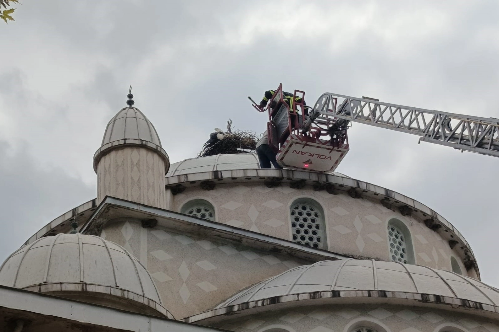 Edinilen devam eden olaya göre İznik'in Orhaniye köyünde meydana geldi. Yiyecek aramak için köy camiinin kubbesindeki yuvadan leylek, birkaç saat sonra geri dönen yuvaya çıkışlarının olduğu yerde ayaklarının sıkıştığı yer. Leyleğin çırpınışlarını fark eden köyün muhtarı Mehmet Duman, durumu itfaiyeye bildirdi. Yuvada mahsur kalan ve ayağı kırılan leyleğin imdadına Bursa Büyükşehir Belediyesi İznik İtfaiye ekipleri yetişti. İtfaiye aracının 24 metre uzunluğundaki yangın merdiveni yuvaya yetişmesi nedeniyle ekiplerin kurtarma çabaları sonuçsuz kaldı. Olayın yerine bu kez merdivenleri 54 metreye kadar uzanan kapatma aracı çağrıldı. Ancak o da yuvaya yaklaştığı sırada merdivenleri kırılarak ayrılarak ayrıldı. Bu kez bir başka kurtarma aracı çağrıldı. Yuvasında ayağı kırılan şekilde mahsur kalan leylek, ekiplerin üçüncü müdahalesinde kurtarılabildi. Yaralı leylek tedavisi yapılmak üzere Büyükşehir Belediyesi Veteriner Müdürlüğü'ne gönderildi.