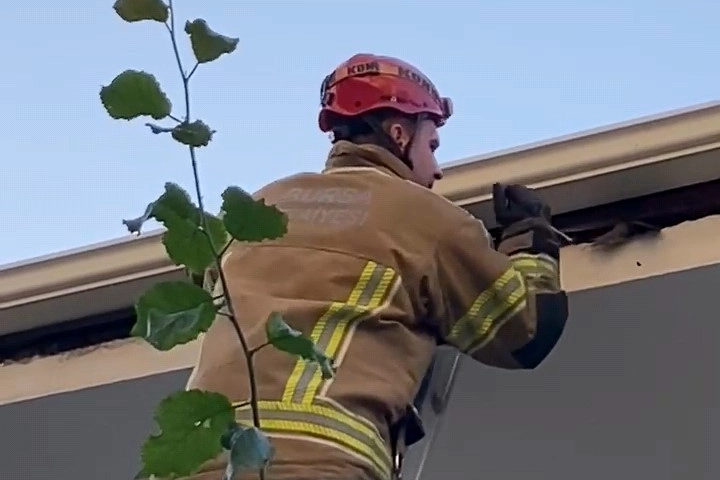 Olay, İnegöl Fatih Mahallesi Özbey Sokak’ta bulunan 2 katlı bir evin çatısında meydana geldi. Ev sakinleri, çatıdaki yağmur suyu kanalından kuş sesi geldiğini fark etti. Durumun fark edilmesi üzerine itfaiye ekiplerine bilgi verildi. Kısa sürede olay yerine gelen itfaiye ekipleri, çatıya çıkarak yağmur suyu tahliye kanalını kontrol etti. Yapılan çalışmada ebabil kuşunun saçağa sıkıştığı tespit edildi. Titiz bir çalışmayla sıkıştığı yerden çıkarılan kuş, zarar görmeden kurtarıldı. Kurtarılan kuş doğaya salınırken, mahalle sakinleri itfaiye ekiplerine duyarlılıklarından dolayı teşekkür etti.