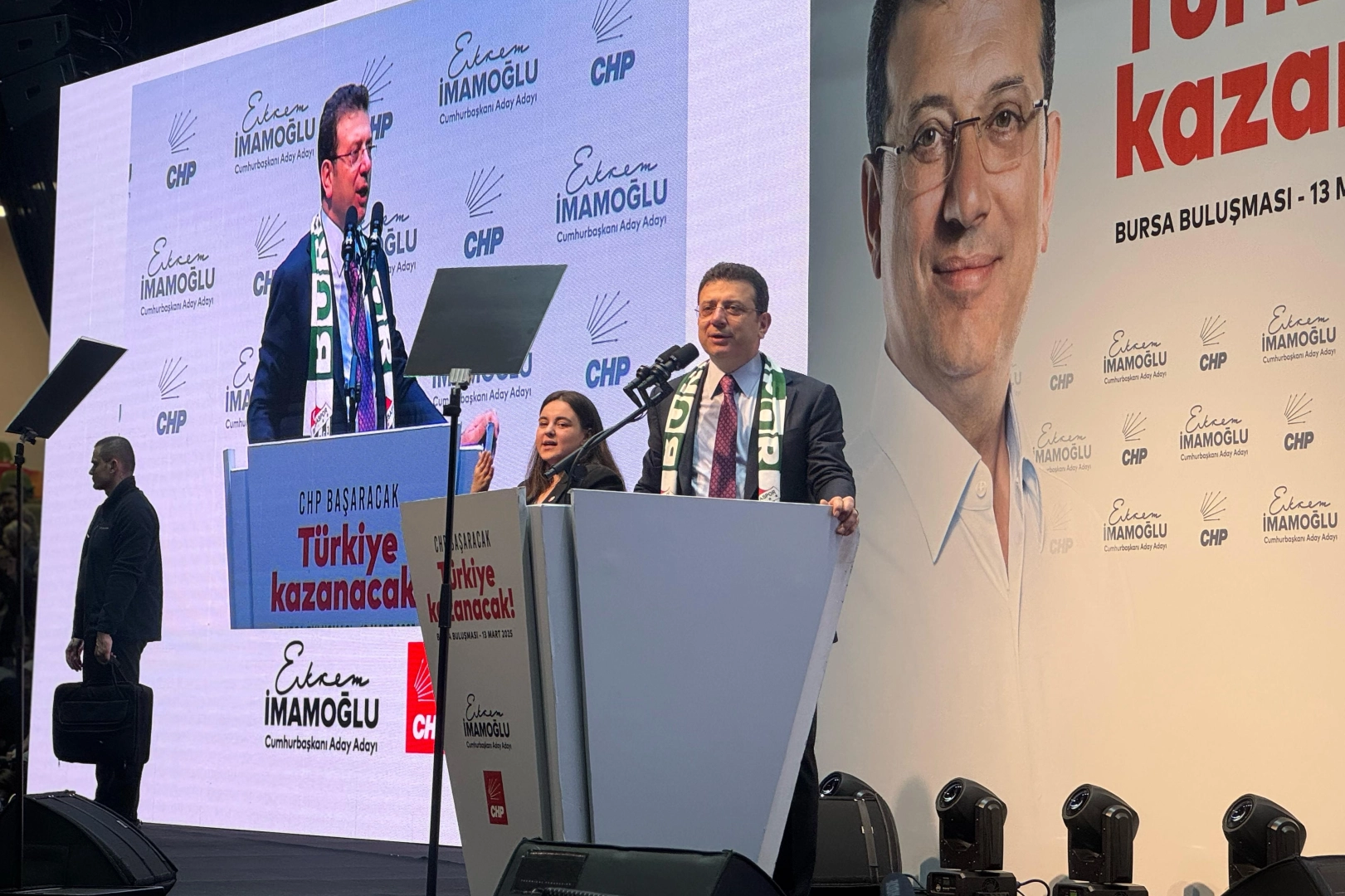 Başkan İmamoğlu’nun İzmir’de başlattığı yurt gezilerinin bugünkü durağı Bursa oldu. İmamoğlu, partililer ve vatandaşlarla Nilüfer’deki Cengiz Göllü Voleybol Salonu’nda düzenlenen mitingde bir araya geldi.