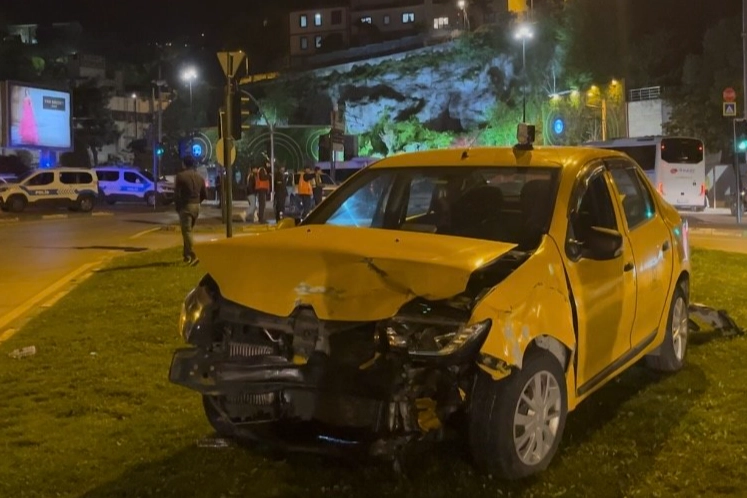 Işık ihlali kaza getirdi... Kırmızı ışıkta geçen otomobil taksiye çarptı