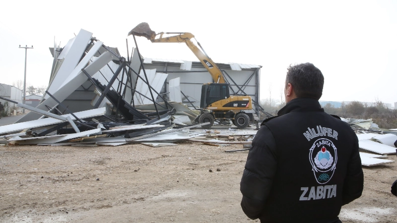 Nilüfer Belediyesi, imar planına aykırı olarak inşa edilen kaçak yapılara göz yummuyor. Özellikle tarım alanlarındaki kaçak yapılaşmayla etkin bir mücadele sürdüren Nilüfer Belediyesi ekipleri, Yaylacık Mahallesi’ndeki 500 metrekarelik depoyu yıktı. Çevik kuvvet ve zabıta ekiplerinin de güvenlik önlemi aldığı yıkımda, depo kullanılamaz hale getirildi.