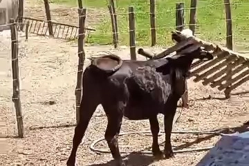 Bursa’da Karacabey ilçesi Kurşunlu Mahallesi’nde meraklı bir inek başını ahşap merdivene sıkıştırdı. Uzun süre merdivenden kurtulmak için çabalayan ineğe sahibi müdahale ederek kurtardı.