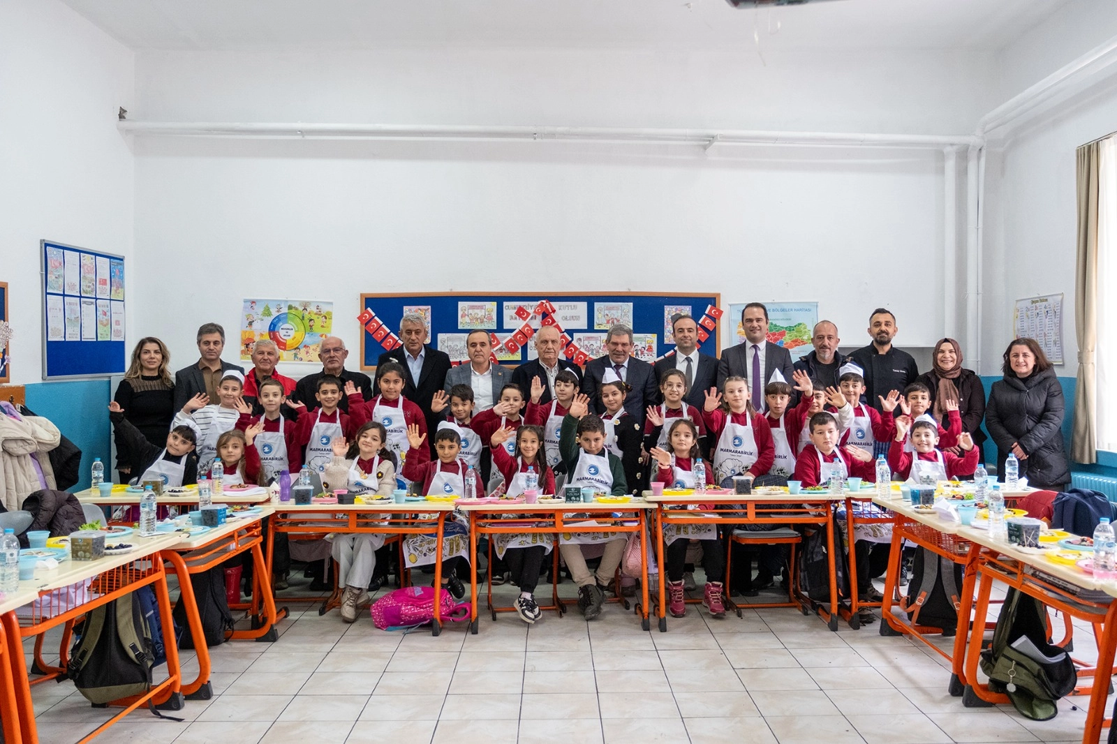 Marmarabirlik, “Minik Şeflerle Zeytinli Tarifler” projesi kapsamında Gemlik Umurbey Abdullah Fehmi İlköğretim Okulu’da öğrencilerle buluştu. Çocuklar, mutfakta tarifler hazırlayarak sağlıklı beslenme ve üretim bilinci kazandı.