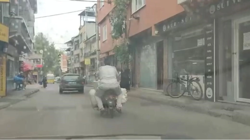 — ogastehaber (@ogastehaber) September 3, 2024Merkez Osmangazi ilçesinde motosikletiyle trafiğe çıkan bir sürücü, motosiklete yüklediği eşyalarla kilometrelerce seyir etti. Kendi canını da hiçe sayan sürücü, uyarılara aldırış etmeden ilerlerken, ilginç yolcuğu gören trafikteki diğer sürücüler ise o anları şaşkınlıkla izledi. Motosikletli sürücü bir süre sonra gözden kaybolurken, tehlikeli yolculuk kameraya anbean yansıdı.