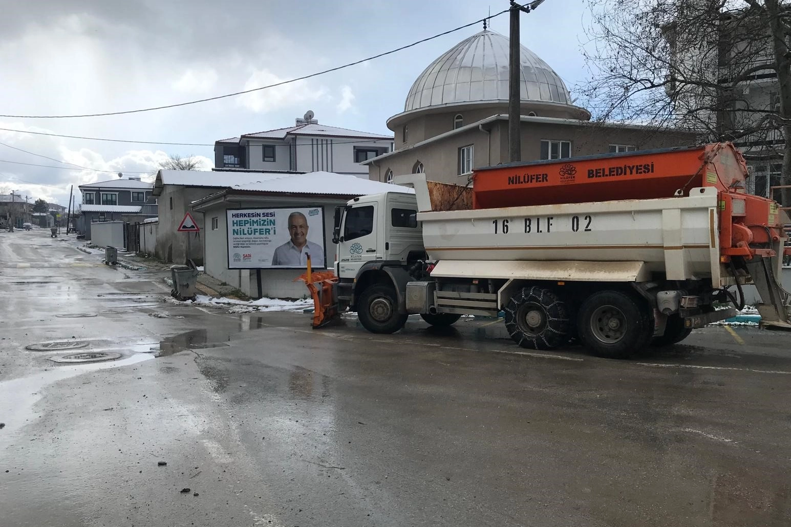 Nilüfer Belediyesi ekipleri, cumartesi sabahı saat 06.00’dan itibaren etkisini artıran kar yağışına karşı adeta seferber oldu. Kırsal ve merkez mahallelerde toplam 22 araçla karla mücadele çalışmaları kesintisiz devam ediyor. İlçe merkezinde özellikle Beşevler, Üçevler, Konak gibi mahallelerde sıcaklığın eksilere düşmesi nedeniyle buzlanan yollarda kazaların önüne geçmek için ekipler sabahın erken saatlerinden itibaren yoğun bir şekilde tuzlama çalışması yaptı. Yolların ulaşıma açık kalması için hummalı bir şekilde çalışan ekipler, 9 tuzlama ve 13 yol açma aracı ile karla mücadele ediyor. Gece-gündüz görev başında olan ekipler, vatandaşlardan gelen ihbarları da değerlendirerek gerekli müdahaleleri gerçekleştiriyor. Yapılan çalışmalar sonucunda Nilüfer'deki tüm mahalle yolları açık tutularak