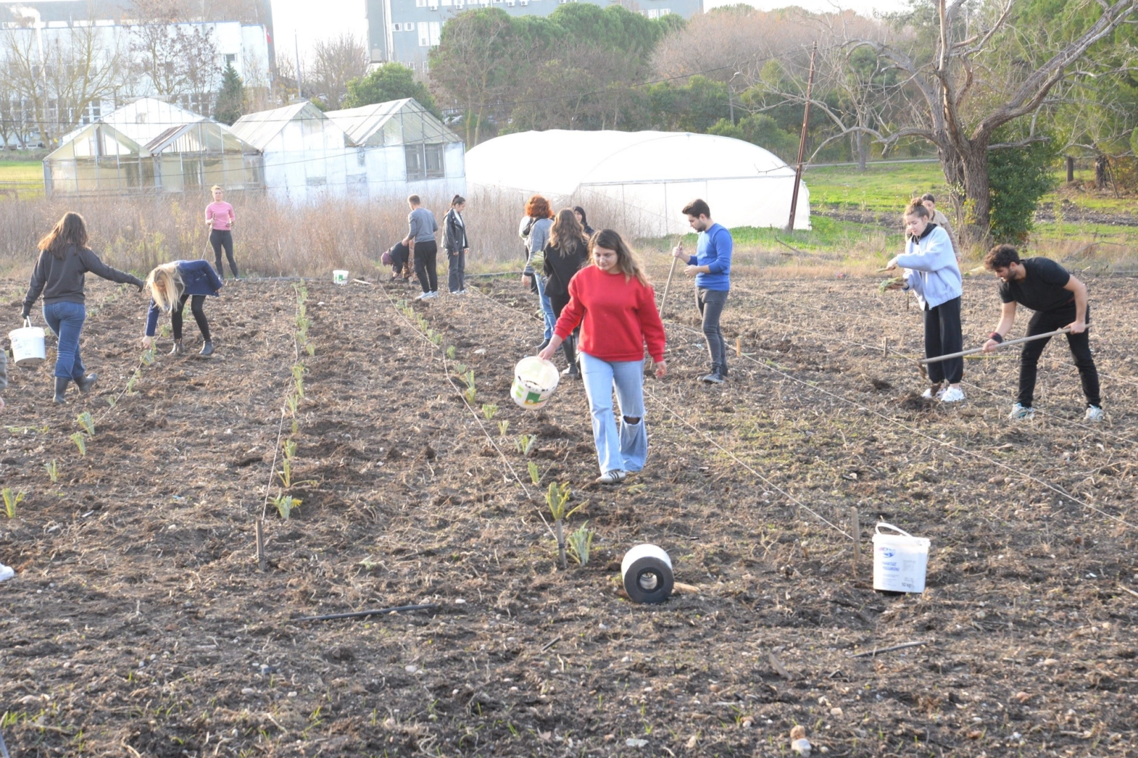 Bahçe Bitkileri Bölümü öğrencileri, Ziraat Fakültesi Bahçe Bitkileri Bölümü Öğretim Üyesi Doç. Dr. Sevinç Başay’ın yönetiminde yaklaşık 3000 metrekarelik bir alana enginar fide dikimi gerçekleştirdi.