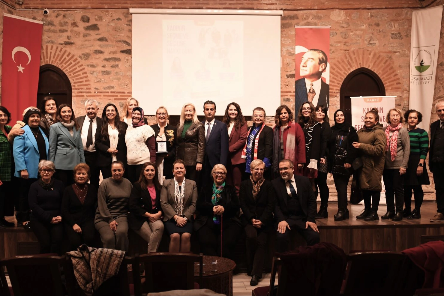 Gazeteci Şeyda Gümüş moderatörlüğünde Ördekli Kültür Merkezi’nde düzenlenen “Kadının Seçme ve Seçilme Hakkı” panelinde CHP Bursa Milletvekili Nurhayat Altaca Kayışoğlu, CHP 25 ve 26. Dönem İstanbul Milletvekili Gülay Yedekçi ve CHP 24. Dönem İstanbul Milletvekili Melda Okur, konuşmacı olarak katılarak kadının toplumda, yaşamda ve siyasetteki yerine değinerek haklarını konuştu. Kadınlara seçme ve seçilme hakkının verilişinin 90’ıncı yıl dönümünde düzenlenen panele Osmangazi Belediye Başkanı Erkan Aydın, Bursa Büyükşehir Belediye Başkan Vekili Sinan Nergiz, Osmangazi Belediye Başkan Yardımcısı Mutlu Esendemir ve Osmangazili kadınlar katıldı.