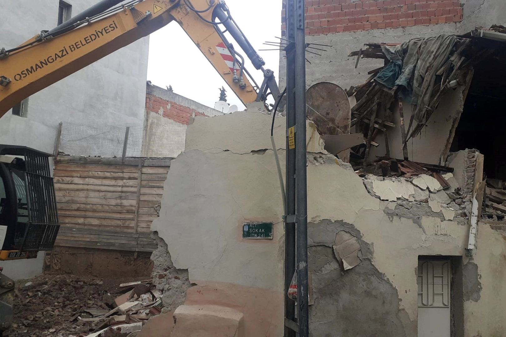 Osmangazi Belediyesi, halkın can ve mal güvenliğini tehdit etmesinin yanı sıra madde bağımlılarının mesken tutması nedeniyle de yoğun şikayetlere konu olan metruk binaların yıkımını sürdürüyor. Mahallelerde yaşayan halkı oldukça tedirgin eden metruk binalar, Yapı Kontrol Müdürlüğü ekipleri tarafından durum tespiti yapılıp, yasal işlemlerinin tamamlanmasının ardından yıkılıyor. Vatandaşlardan gelen talep ve şikayetleri dikkate alan belediye ekipleri, İvazpaşa Mahallesi’nde yer alan metruk binayı yıkmak için harekete geçti. Emniyet ve sağlık açısından risk oluşturan metruk bina, iş makinesi ile yıkıldı. Yıkımın ardından ortaya çıkan molozlar, belediye ekipleri tarafından kamyonlara yüklenerek yıkım alanı temizlendi.