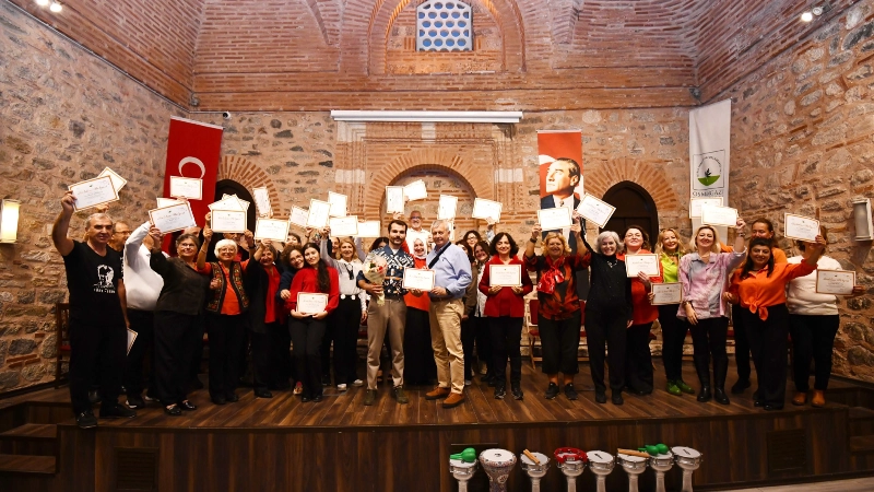 Ritim Atölyesi’nin ikinci dönemini başarıyla tamamlayan ve sertifikalarını alan kursiyerler, bu imkanı kendilerine sunduğu için Osmangazi Belediye Başkanı Erkan Aydın’a teşekkür etti.