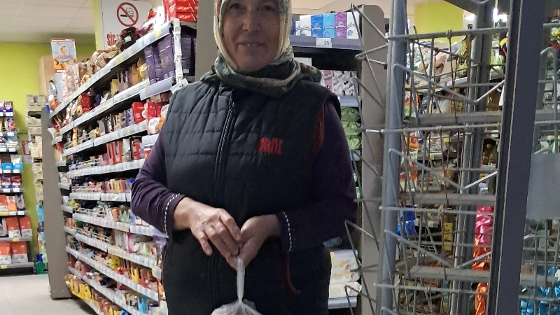 Boyalıca Mahallesi Atatürk Caddesi üzerindeki markete alışverişe giden Reyhan Fındık, zeytin toplarken çamurlanan ayakkabılarını kapı önünde bıraktı. Çoraplarıyla markette alışveriş yapan Fındık, "Market kirlensin istemedim. Sonuçta buradaki çalışanlar temizliyor. Hak geçmesin" dedi. Fındık'ın bu hareketi takdir toplarken, market çalışanları da duyarlı davranışı sebebiyle Fındık'a teşekkür ettiler.