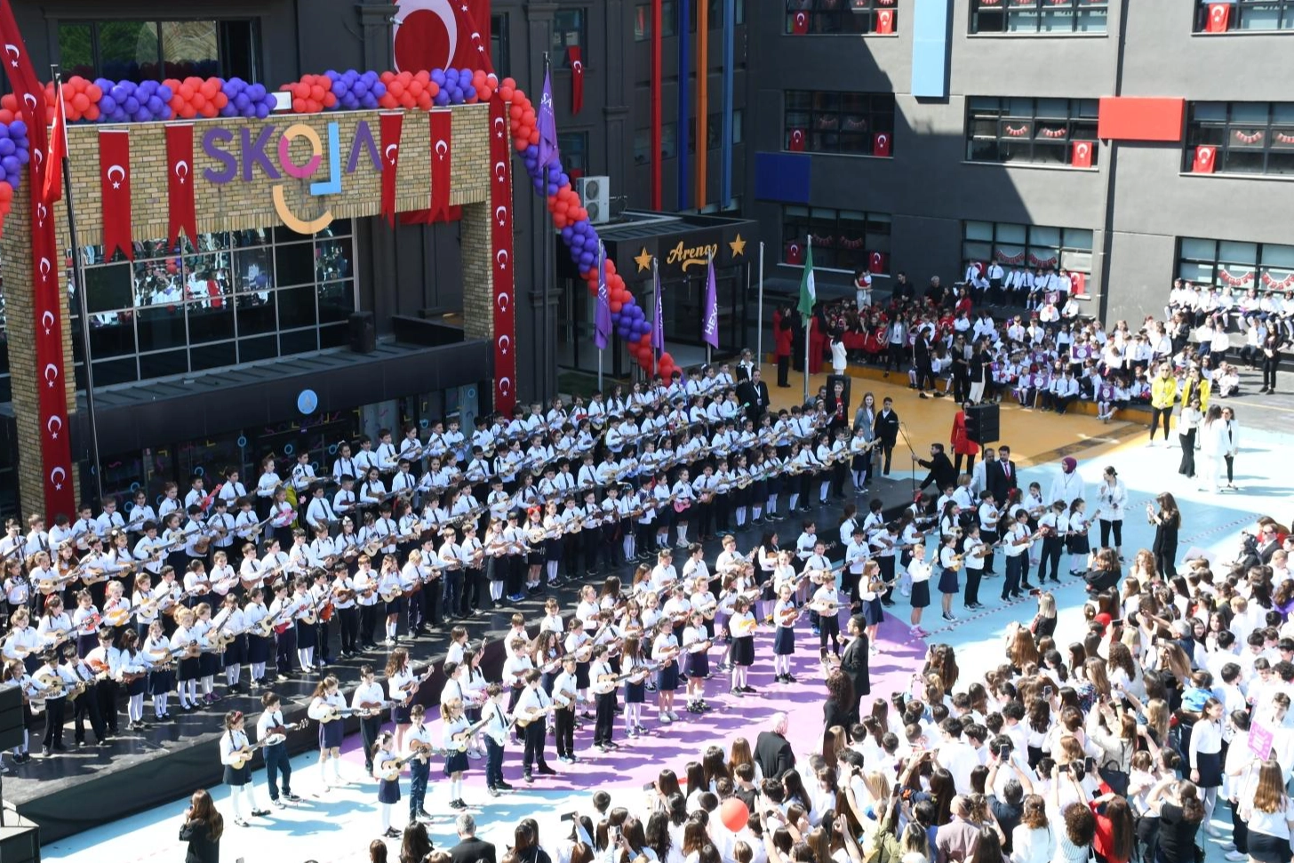 Program çerçevesinde anaokulundan 4.sınıflara kadar her yaş grubundan öğrenciler dans gösterileri, koro performansları ve ukulele eşliğinde çalınan şarkılar ile 23 Nisan’ı kutlarken