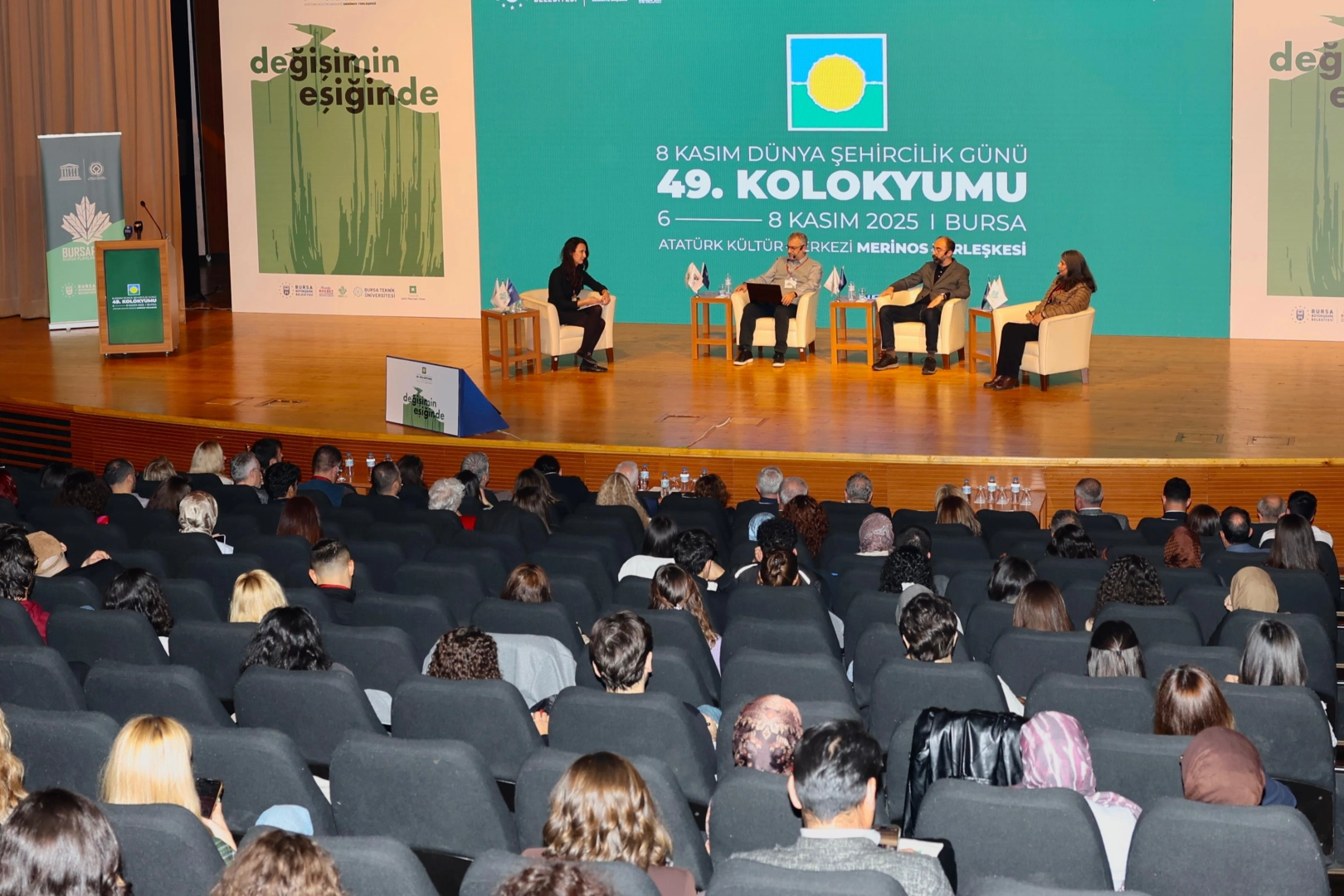 Bursa Büyükşehir Belediyesi, TMMOB Şehir Plancıları Odası, Bursa Teknik Üniversitesi ve Bursa Planlama Ajansı iş birliği ile hazırlanan Dünya Şehircilik Günü 49. Kolokyumu, ‘Değişimin Eşiğinde’ temasıyla Atatürk Kültür Merkezi Merinos Yerleşkesi’nde başladı. 6-8 Kasım tarihleri arasında düzenlenecek olan kolokyumda, şehircilik dünyasının güncel sorunları ve çözüm önerileri masaya yatırılıyor. Üç gün sürecek olan kolokyumda, paneller, oturumlar, akademik bildiriler, forumlar, öğrenci çalıştayları ve sergiler yer alacak.