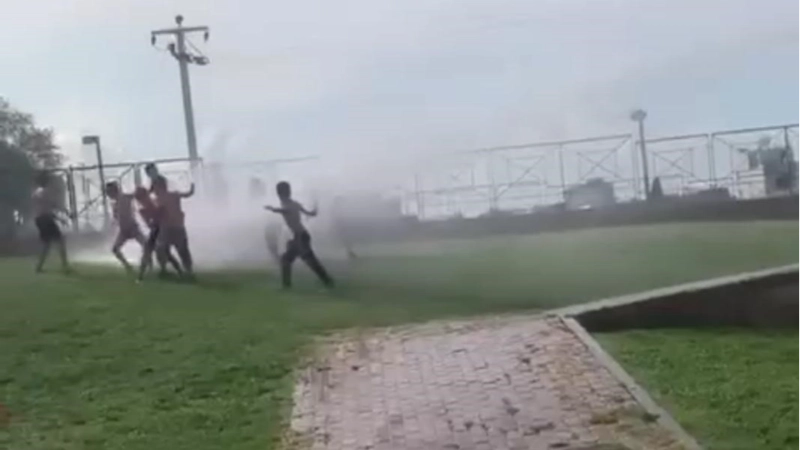— ogastehaber (@ogastehaber) September 3, 2024Bursa Büyükşehir Belediyesi Park ve Bahçeler Müdürlüğü ekiplerinin yol refüjlerindeki ağaçlarının sulamasını yaptığı sırada parkta oyun oynayan çocuklar, sulamanın yapıldığı alana gitti.
