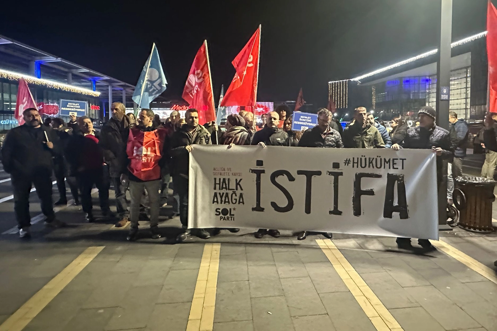 SOL Parti Bursa İl Örgütü üyeleri de bugün Kent Meydanı’nda yeni belirlene asgari ücrete dair basın açıklaması gerçekleştirdi.