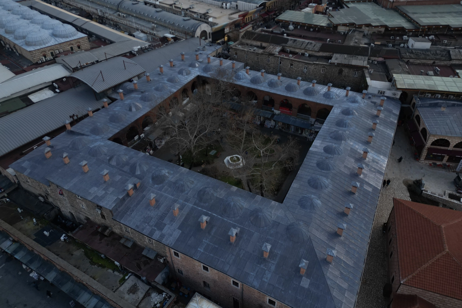 Osmanlı'nın ilk başkenti olan Bursa'da 14. yüzyılda oluşmaya başlayan, 16. yüzyılda han, bedesten ve çarşıların gelişimiyle sürecini tamamlayan Tarihi Çarşı ve Hanlar Bölgesi, Bursa Büyükşehir Belediyesi tarafından yürütülen çalışmalarla eski ihtişamına kavuşuyor. Daha görünür hale gelen tarihi hanlarda restorasyon çalışmalarını sürdüren Büyükşehir Belediyesi, bu kapsamda tarihi İpek Han’ı baştan sona eski kimliğine tekrar kavuşturdu. Fen İşleri Dairesi Başkanlığı Yapı İşleri Şube Müdürlüğü tarafından yürütülen proje kapsamında tarihi yapının bakım onarımı yapılarak cephe yenileme çalışmaları tamamlandı. 2620 metrekarelik alanda bulunan kubbeler sökülerek tamamen değiştirildi. 220 ton kurşun kullanılarak çatı kaplaması bitirilirken, proje için yaklaşık 25 milyon TL harcandı. “Hanlar Bölgesi’nin 24 saat yaşamasını hedefliyoruz” UNESCO Dünya Mirası Listesi’ne giren 700 yıllık Tarihi Çarşı ve Hanlar Bölgesi’nin Osmanlı’nın ilk çarşılarından olduğunu hatırlatan Bursa Büyükşehir Belediye Başkanı Mustafa Bozbey, bölgenin hala sosyal hayatın vazgeçilmez bir parçası olduğunu söyledi. Bursa’nın daha çok bölgesiyle UNESCO Dünya Mirası Listesi’nde yer almasını istediklerini belirten Başkan Bozbey, ancak bu şekilde uluslararası arenada tanınırlığı artırabileceklerini ifade etti. Fen İşleri Dairesi Başkanlığı aracılığıyla tarihi yapılarda önemli çalışmalar yürütüldüğünü anlatan Başkan Bozbey, “Bursa, 1.4 olan geceleyen turist sayısı ile turizmden en az payı alan kentlerden bir tanesi. Bizler bu oranı artırmak için çalışıyoruz. Hanlar Bölgesi’nin 24 saat yaşamasını hedefliyoruz. Bu kapsamda İpek Han’ın bakım onarım ve cephe yenileme çalışmaları tamamlandı. Kubbeleri sökülerek değiştirildi. Kurşun çatı kaplaması için 220 ton kurşun kullanıldı. Tarihimizi tekrar ayağa kaldırırken, Bursa’nın turizmden hak ettiği payı alabilmesi için de mücadele ediyoruz” dedi. Tarihi İpek Han Çelebi Mehmed tarafından Yeşil Külliye’ye gelir getirmesi için 15. yüzyılın ilk yarısında yaptırılmıştır. Hanın mimarının, dönemin değerli devlet adamı, asker ve mimar olan Hacı İvaz Paşa olduğu tahmin edilmektedir. İlk zamanlarda ipekçilerin toplanmaya başladığı han olması sebebiyle bu adı almıştır. Klasik Osmanlı hanları tarzında inşa edilen iki katlı, revaklı, avlulu yapının zemin katında 39, üst katında ise 42 odası bulunmaktadır. Bursa’nın en büyük hanlarından birisidir. 1958’deki büyük yangında büsbütün harap olan yapı, 1972-1973 yıllarında restore edilmiştir. Günümüzde handa terzi atölyeleri ve giysi satan dükkanlar bulunmaktadır.
