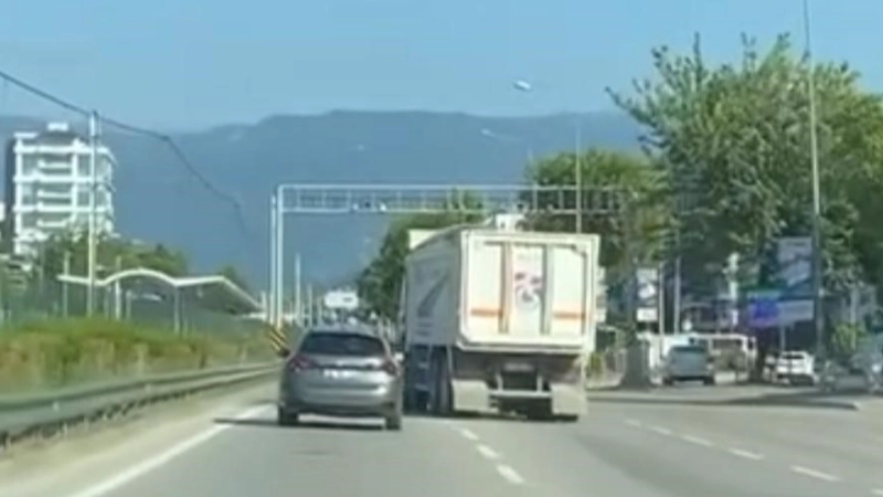 Bursa Mudanya Yolu üzerinde 16 YBS 29 plakalı kamyon ile anayolda ilerleyen sürücü, adeta freni patlamış gibi ilerledi. Bir sağ, bir sol şeride geçerek otomobillerin arasında makas atan sürücü trafiği birbirine kattı. Sürücünün ne kendi ne de başkalarının canını düşünmeden ilerlediği anlar trafikteki diğer sürücülerinin kamerasına saniye saniye yansırken, polis görüntüler üzerine harekete geçti.