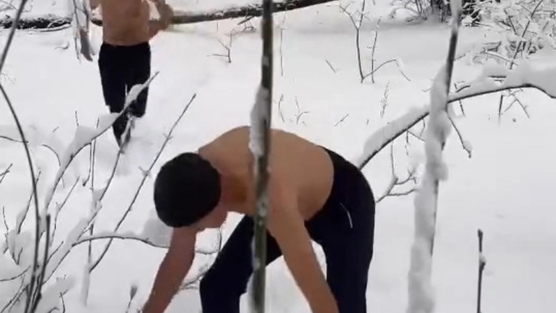Bursa'da kar yağışı etkili oldu. Uludağ'ın eteklerinin kar tutması sebebiyle ormanlık alanda iki kafadar eğlenceyi zirveye taşıdı. Hava sıcaklığının eksi dereceleri gördüğü Kaplıkaya'da iki arkadaş, yarı çıplak bir şekilde karın tadını çıkardı. İki kafadar yarı çıplak şekilde kara gömülürken, koşarak da spor yaptı.