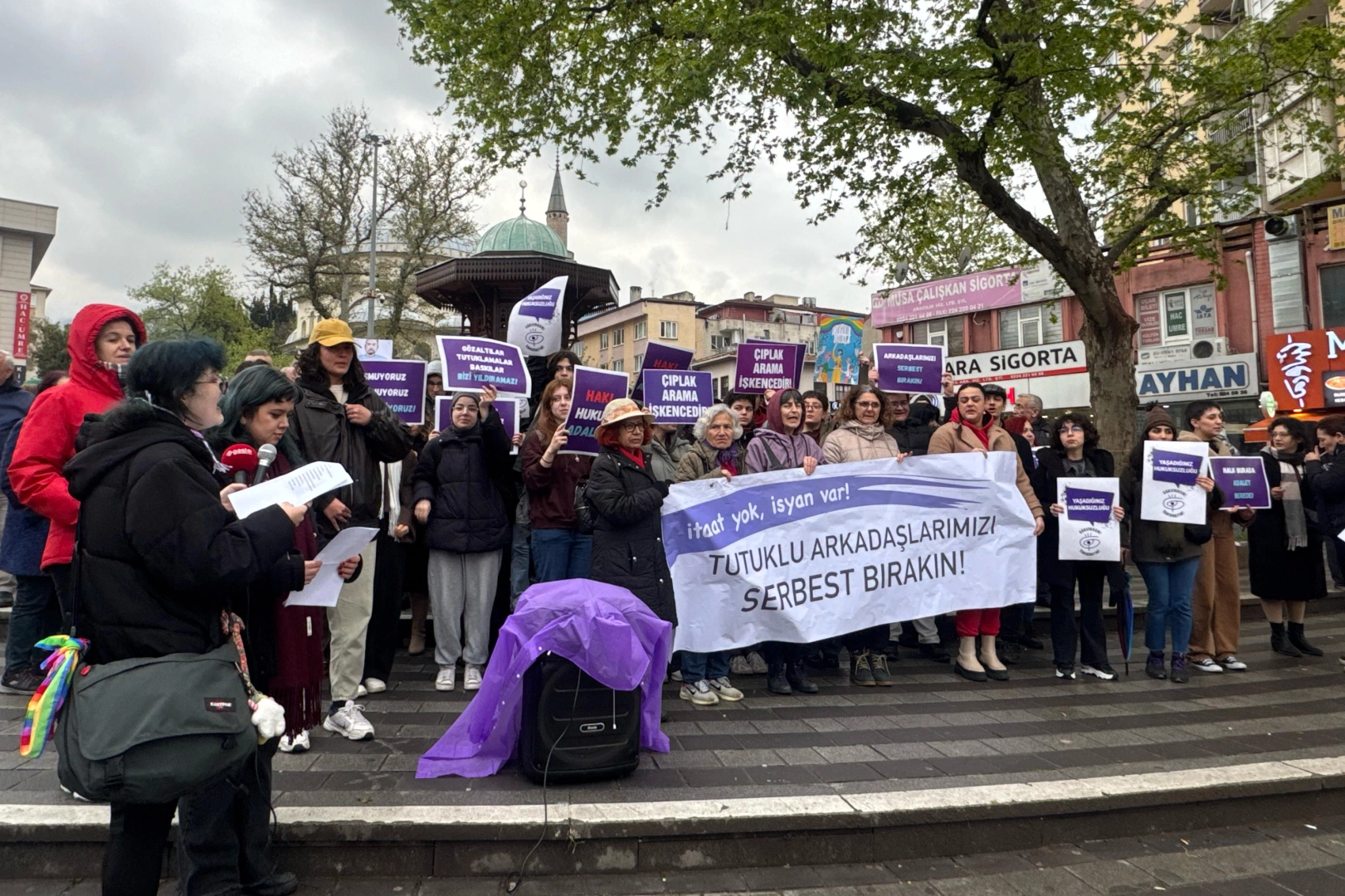 Bizler bugün içeride bir arkadaşımızı bile bırakmadan, haklarımıza, özgürlüğümüze kavuşana dek tek adam rejimine, onun yargısına polisine, patriyarkaya karşı eylemimize devam edeceğiz!