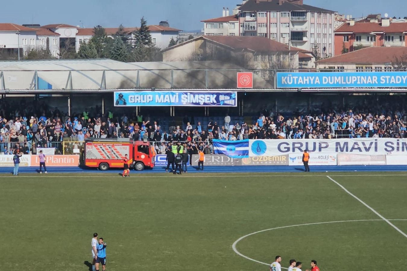 Belediye Kütahyaspor - Bursaspor mücadelesinin 87. dakikasında Dumlupınar Stadyumu'nun orta tribünlerinden dumanlar yükselmeye başladı. Karşılaşmanın hakemi oyunu durdururken, itfaiye ekipleri müdahale için dumanların yükseldiği yere gitti. Neden çıktığı belli olmayan yangına kısa sürede müdahale edildi. Karşılaşmanın hakemi oyunu 4 dakika sonra tekrar başlattı.