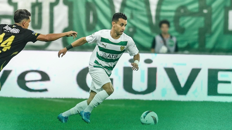 26' Bursaspor'da Ahmet İlhan Özek, ceza sahası içerisinde topla buluştu. Müsait pozisyonda deneyimli oyuncu iyi bir vuruş yapamayınca meşin yuvarlak savunmadan sekerek uzaklaştırıldı.