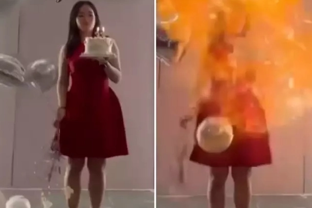 Vietnam'ın başkent Hanoi'de Giang isimli kadının doğum günü kutlaması kötü bitti. Giang'ın doğum günü kutlaması sırasında elinde tuttuğu pastanın mumları diğer elindeki hidrojen dolu balona temas edince patlama meydana geldi.