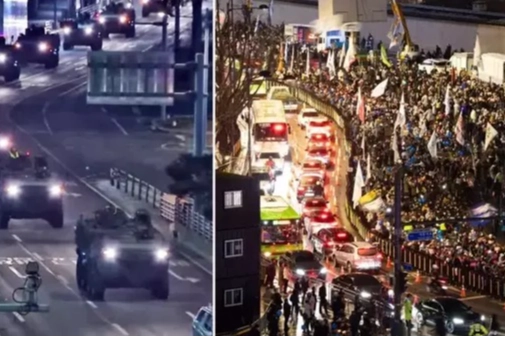 Karardan kısa süre sonra orduya ait tanklar ve askerler, Güney Kore sokaklarında boy göstermeye başladı. Darbe endişesinin yaşandığı ülkede parlamento binasına askeri helikopterler indi.