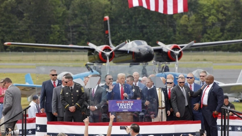 Trump, konuşmasında, rakibi olan Demokrat Partinin başkan adayı, Başkan Yardımcısı Kamala Harris'i eleştirdi.