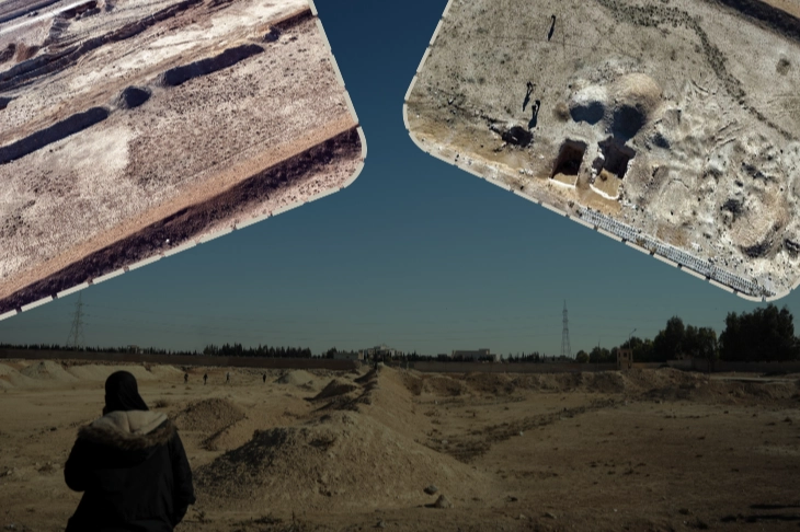 Havadan çekilen görüntülerde mezar alanında devasa çukurlar dikkat çekti. Henüz tespit çalışmalarının başlamadığı alandaki mezarlarda rejim tarafından öldürüldüğü düşünülen ve kendilerinden haber alınamayan binlerce Suriyelinin olduğu iddia edildi.
