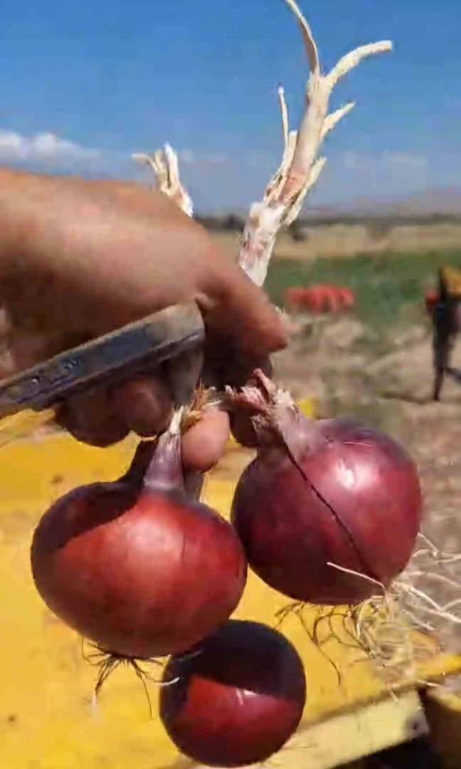 Çorum’un Alaca ilçesinde üretilen coğrafi işaret tescilli ’Alaca mor soğanında hasat dönemi başladı.Parlak, sert dış kabuğu, keskin aroması, kokusu ve koyu rengiyle öne çıkan Alaca mor soğanında üreticilerin yaklaşık 6 ay süren bekleyişin ardından söküm ve kuruma bekleyişinin ardından patoslama yapılan Alaca mor soğanın hasat dönemi devam ediyor.Günün erken saatlerinden itibaren tarlalara giden üretici çiftçiler, mevsimlik tarım işçilerinden ücret karşılığı aldıkları hizmet ile beraber mor soğanları öbek öbek yığın yapılmasıyla “Alaca moru” olarak bilinen soğanlar, kova ve yaba yardımıyla patos makinesinde pür ve püsküllünden ayrılarak, boyutlarına göre takoz, orta ve kıska olarak üç çeşit şeklinde sınıflandırılıp paketleme işlemi yapılıyor.İlçenin en önemli tarımsal ürünü olarak gösterilen mor soğan, iç tüketimin yanı sıra yurt dışından yoğun talep görüyor. Alaca Ziraat Odasından alınan bilgilere göre, 2024 yılında resmi kayıtlara göre Alaca’da 28 bin 447 dekar alanda soğan üretimi yapıldığı ve kaliteli ürün elde edilmesi için iklim şartlarının yanı sıra sulama ve gübreleme işlemlerinin doğru yapılmasının gerektiğine dikkat çekilirken, bu yıl verimin dekar başına ortalama 2 ile 2.5 ton mahsul elde edileceği tahmin ediliyor.İlçeye bağlı Boğaziçi köyünde soğan üreticisi Enver Gündugan ve Sincan köyünde Duran Uyar, İHA muhabirine yaptığı açıklamada, bu sene kuraklık nedeniyle rekoltede ve verimde önemli ölçüde kayıp yaşandığını, mor soğanın Alaca ile özdeşleştiğine en iyi mor soğanın Alaca’da yetiştiğini işaret etti.Gündugan ve Uyar, “Alaca morunu Türkiye’de birçok bölgeye gönderiyoruz. Özellikle doğu bölgelerimizde tüketimi yoğun, ayrıca birçok yabancı ülkelere ihraç ediyoruz. Soğanlarımızı tarlada paketleme yaptıktan sonra depolara kaldıracağız. Daha sonra Türkiye’nin çeşitli bölgelerine göndereceğiz" dedi.Duran Uyar, “Bu yıl kuraklık nedeniyle verim düşük, bilindiği üzere maliyetler yüksek normalde dekardan 4 ile 5 ton ürün aldığımız yerde bu yıl 400 ile 2 ton verim oldu, geçen yıllarda 4 ila 5 ton verim alınıyordu, Yani bu yıl verimde yüzde 50-60 kayıp var” şeklinde konuştu.Ürünün azalmasına karşılık üretim maliyetlerinin yükseldiğini dile getiren Uyar, "Şu anda bizden çıkış kilogram fiyatı 10 TL ancak bu durumda bu fiyatta bizleri kurtarmıyor" ifadelerini kullandı.Enver Günduğan ise, soğanın ekiminden sofraya gelene kadarki süreçte yoğun emek isteyen bir ürün olduğunu belirtti. Günduğan devamlı içerisinde olarak kök hastalığı, güneş yanığı orta çürüklük hastalıkları olduğunu bunlarla baş etmek için kontrol edilmesi gerektiğini sözlerine ekledi.