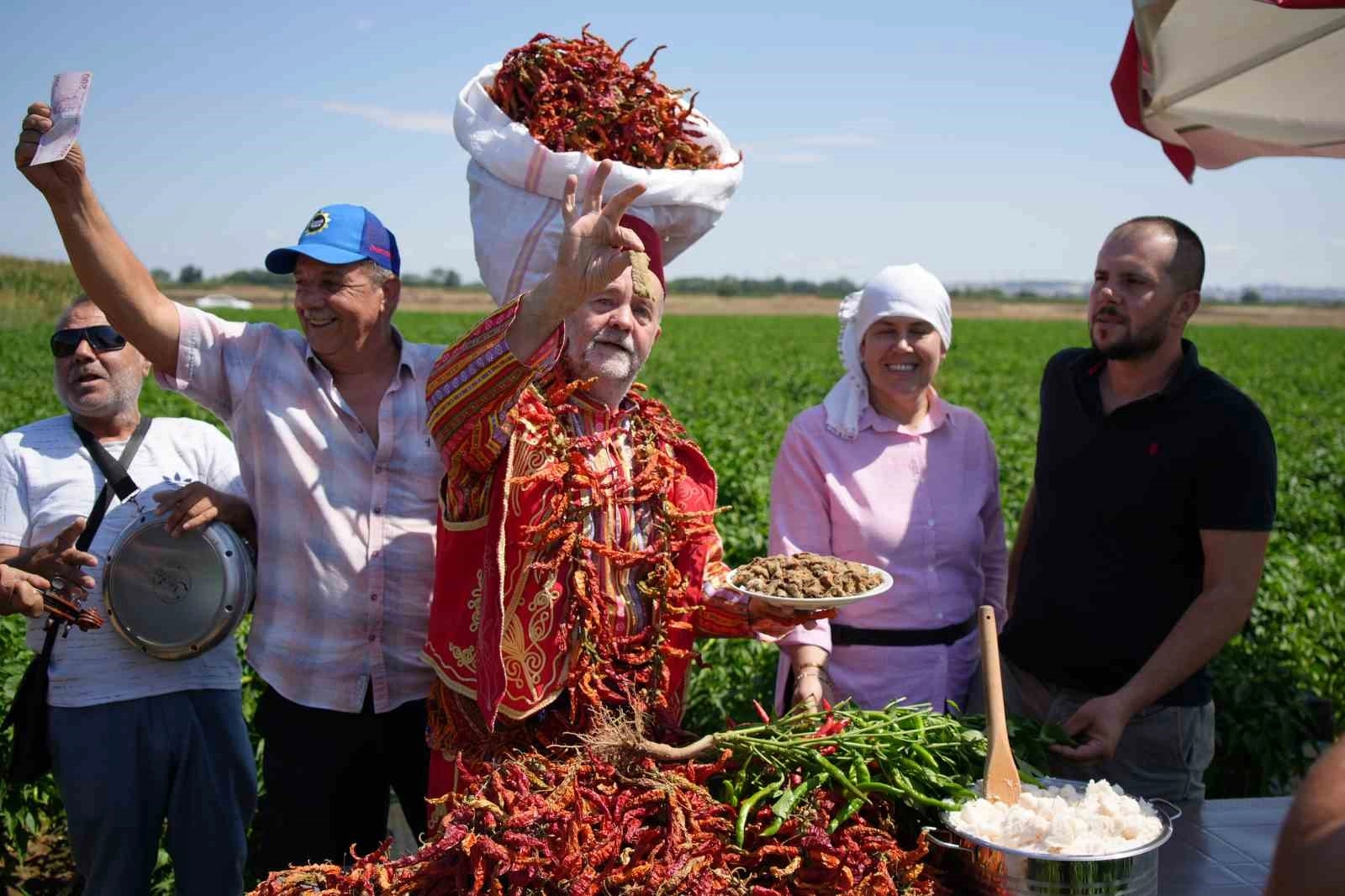 Edirne’nin meşhur tava ciğerinin yanında ana garnitür olarak sunulan patentli ve tescilli Karaağaç acı biberinin hasadı kavurucu sıcaklar sebebiyle 1 ay geç başladı.Edirne’nin meşhur tava ciğerinin vazgeçilmez garnitürü olarak ciğerin yanında misafirlere sunulan patentli ve tescilli Karaağaç acı biberinin hasadı başladı. Bu yıl kavurucu sıcaklar nedeniyle biber hasadına 1 ay geç başlanıldı. Biber hasadı yapan tarım işçileri hava sıcaklığının 40 dereceye yaklaştığı güneşin altında büyük emek sarf ediyor. İşçiler tarafından sabahın ilk ışıklarında toplanmasına büyük emekle başlanılan acı biberler, iplere dizilip kurutulduktan 1 buçuk ay ila 35 gün sonra sofralardaki yerini alacak. İlk hasat nedeniyle Edirne’nin Karaağaç Mahallesi’nde çiftçilik yapan Yılmaz Ule, tarlada çalışan tarım işçilerine keman ve darbuka eşliğinde ciğer ile deva-i misk ikram edildi. İşçiler de Trakya oyun havaları eşliğinde göbek atarak hasada devam etti.“Bu sene yeşil biberin fiyatı 85 lira”Karaağaçlı Çiftçi Tunahan Ule Karaağaç acı biberinin yetiştirilişi ve işçiliğinin zorluğunu ifade ederek, “Edirne Karaağaç Mahallesinde çiftçilik yapıyorum. Patentli tescilli ciğer biberi yetiştiriyoruz. Bu gün de burada hasat yapıyoruz. Çok keyifli bir hasat var. Bu sene haşatımıza 20 gün geç başladık. 40 derecelerden dolayı biberimiz çok strese girdi. Bu biber yerli tohum yani Ata tohumumuz yani dedemizin dedesinden kalma o yüzden çok çabuk strese giriyor. En büyük özelliği ince kabuk olması biberimizi yalnızca senede 2 kere toplayabiliyoruz 3’üncü kez toplayamıyorsun çok verimli bir biber değil şimdi burada toplandıktan sonra tek tek iplere dizilecek imece oradan tek tek askıya asılması gerekiyor ve gölgede asılması gerekiyor. Güneş görmeyecek. Nem olan yerde kesinlikle kurumaz. Bu 35-40 derecelerde askıdayken 1 ayda 35 günde biberimiz kurumuş hale geliyor. Fakat dereceler 20-25 derece olduğu zaman iki üç ay içinde kurumuş oluyor. Biberimiz sadece Edirne Karaağaç Mahallesi’nde yetişiyor ve ayrıca sınır bölgesinde yetişiyor. Suya yakın ve ovalarda yetişmiyor sadece sınır bölgesinde yetişiyor. Yunanistan’a sınır olan bölgelerde yetişiyor. Edirne Tava Ciğer’inin yol arkadaşı. Ciğer olmazsa biber olmaz biber olmazsa ciğer olmaz totalde 200 tona yakın bir hasat bekliyoruz. Bu sene yeşil biberin fiyatı 85 lira” dedi.“Dünyanın en tatlı acısını beraber çıkartıyoruz”Edirneli esnaf Arif Meriç ise Karaağaç biberinin sadece Edirne Karaağaç ve sınırda yetiştiğini vurgulayarak, “Burada bir alın teri var alın teri. Edirne ciğerini yanına gelen o dünyanın en tatlı acısı olan o biber var ya bin bir meşakkatle geliyor. Onların yüzlerindeki mutluluğu dünyanın en tatlı acısını beraber çıkartıyoruz. Bundan daha mutlu, bundan daha ferah, bundan daha güzel bir hayat olur mu diye düşündüm. Hakikatten çok mutluyuz, sebebine gelince bu topraklar öyle mübarek öyle bereketli topraklar ki dünyanın hiçbir yerinde yetişmeyen bu Edirne’nin deva-i misk’i ile Edirne’nin karaağaç biberi burada çıkıyor. Çok mutluyuz o kadar mutluyuz ki o kadar sevinçliyiz ki dünyanın dört bir uçağından Edirne’mize gelip ciğerini yiyip biberini almadan gitmiyorlar. Hem biberi hem ciğeri yiyorlar bir taraftan tatlanıyorlar oh be kardeşim diyor. İyi ki gelmişim Edirne’ye diyor. Ruhun ne kadar boşlukları varsa Edirne’de bu biber bu deva hepsini dolduruyor efendim. En uç yerdeyiz düşünebiliyor musunuz 200-300 metre ileride Yunanistan var Allah’ın hikmetine bakın bu biber burada yetişiyor orada yetişmiyor şu güzelliğe bakın. Dünyanın hiçbir yerinde aramızda 200 300 500 metre olan biraz daha ilerlesin toprakta bu dünyanın biberi karaağacın biberi orada yetişmeyip burada yetişmesi bizler için çok büyük bir enerji. Aman Allah’ım bizim dedelerimizin dedesi yüzyıllarca neyi saklamışlar gelecek nesillere tohumunu saklamışlar bunun da tohumu Edirne Karaağaç biberinde. Onun için buradan diyorum ki buradan yanımızdaki komşumuza da selamlar hürmetler olsun ne zaman canları ciğer çektiğinde löp Edirne’ye geliyorlar yanında da Karaağaç’ın biberini yiyorlar. Neden? Yan yana komşuyuz ya işte dünya bu kadar kısa” diye konuştu.