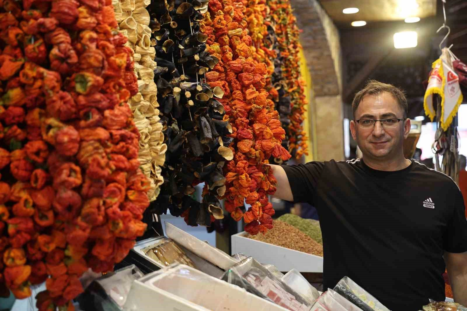 Elazığ’da kış aylarının vazgeçilmez lezzeti olan yeni mahsul kurutmalıklar tezgahlardaki yerini aldı.Elazığ’da yaz mevsiminde tarlalardan toplanıp içleri oyulduktan sonra iplere asılarak kurutulan biber, patlıcan, acur ve kabaklar, tarihi Kapalı Çarşıda tezgahlarda yerini aldı. Yörede ‘kofik’ olarak adlandırılan kurutmalıklar, çarşıyı renklendirdi. Son 20 gün içerisinde yerli kurutmalıklar çıkmaya başlarken, fiyatlar da düştü. Köylüden 100 liraya alınan kurutmalıklar çarşıda, ortalama 120 liraya satılmaya başlandı. Yeni mahsul kurutmalıklar vatandaşlardan yoğun ilgi görüyor.’’Elazığ ürünleri çıktığı zaman piyasanın havası da değişti’’Elazığ’da kurutmalıklarının sürekli olduğunu belirten Kapalı Çarşı Başkanı Yargıç Emir, “Elazığ ürünü çıkmadan Gaziantep ve Kahramanmaraş’tan temin ediyoruz. Yaklaşık 20 gündür Elazığ kurutmalıkları çıktı. Keban biberi, patlıcan, acurlar kurutuldu. Bunların yarmaları da çıktı. Hem kurutmalık hem de yarma olarak satıyoruz. Elazığ ürünleri çıktığı zaman piyasanın havası da değişti. Elazığ ürünü 100 liradan satılırken Gaziantep ve Kahramanmaraş ürünleri 150 ile 200 arası satılıyordu. Elazığ ürünü piyasaya girince fiyatlar düştü. Zaten gurbetçilerin en çok üzerinde durduğu Elazığ biberi ve patlıcanıdır. Bizim biber ve patlıcan daha ince lezzetli. Her esnafın kendisine göre köyü var. Orada yapılan kurutmalıklar bir esnafa geliyor. Biber dolması daha kolay ama patlıcanın içerisini çıkarması daha zordur. Patlıcan o yüzden biraz daha pahalı. Elazığ’da olan vatandaşlar kendileri kurutuyor, fazlalıkları da bize getiriyorlar. Nemli bölgelerden gelenler buradan alıyor. Çünkü orada kurutmak imkansız. Kargolarımız da var, kapısına kadar yollayabiliyoruz. Kurutmalıklar ortalama 120 lira. Köylüden 100 liraya alıyoruz ve ortalama 120 liraya satıyoruz. Kabak biraz daha pahalı 200 lira. Kabak biraz daha zahmetli” dedi.