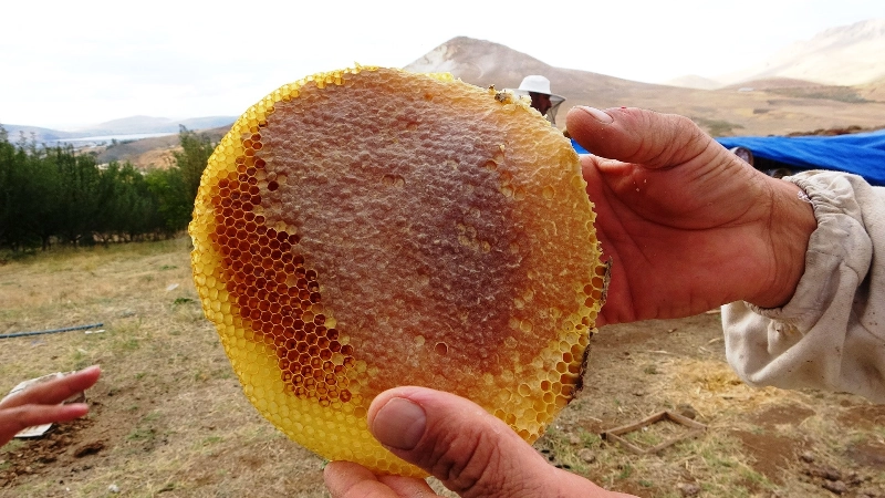 Van'ın İpekyolu ilçesinde arıcılar, 2 bin 400 rakımlı Erek Dağı eteklerinde bal hasadı yaptı. Arıcı Abdülmecit Dündar'a ait kovanlarda yapılan bal hasadı, üreticileri sevindirdi. Konuyla ilgili açıklamada bulunan Van Arıcılar Birliği Başkan Yardımcısı Halil Tandoğan, Van'da bin 400 arı işletmesinde yaklaşık 14 bin arı kovanın olduğunu ifade ederek, yılda 2 bin ton bal üretiminin gerçekleştirildiğini söyledi. Bu sene özellikle yağan yağışlardan dolayı bal üretiminin oldukça verimli geçtiğinin belirten Tandoğan, “Bu sene yağışlar istediğimiz gibi gerçekleşti. Verimli bir sene geçti diyebiliriz. Bütün arıcılarımızın yüzü gülüyor” dedi.
