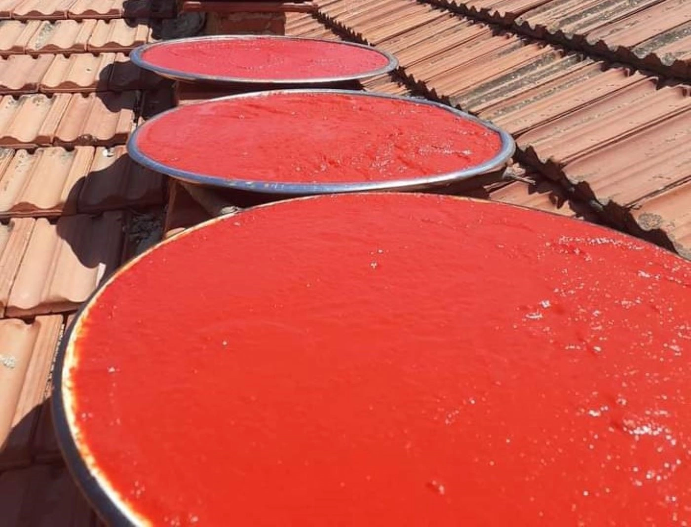 Manisa’nın Sarıgöl ilçesinde evlerde yapımına yoğun bir şekilde devam edilen domates ve biber salçalarının güneşte suyunu çekmesi için sinilerde evlerin çatılarına bırakılması ortaya renkli görüntüler çıkardı.Evlerde hazırlanan domates salçalarının yeterli güneş ışığı alması için siniler açık havada masa üzerlerine, divan üzerine yada yüksek olan beton teraslara konulduğu gibi kimileri de evin kiremitleri üzerine koyarak salçaların iyice suyunu çekmesini bekliyorlar. Bu arada içleri salça dolu olan siniler ara sıra kaşıkla karıştırılarak iyice kıvam alması sağlanıyor. Yaklaşık bir hafta güneş altında kalan salçalar daha sonra küçük cam kavanozlara konularak kışın tüketilmek üzere kilerlere kaldırılıyor.