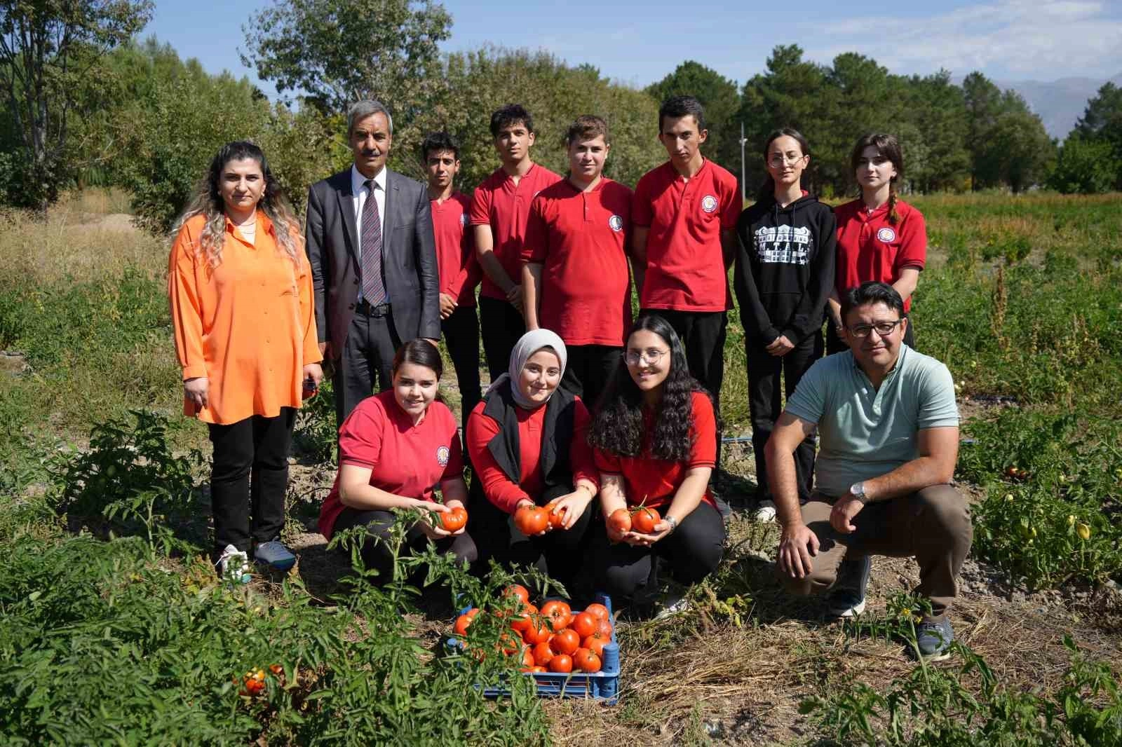 Erzincan’da Gül Celal Toraman Mesleki ve Teknik Anadolu Lisesi öğrencileri, okul bahçesinde oluşturulan yaklaşık 5 dönüm tarlada domates, biber yetiştiriyor.Mevsimine göre sebze yetiştiren öğrenciler hem çiftçilik mesleğinin inceliklerini öğreniyor hem de ek gelir elde ediyor. Öğrencilerin, haftanın 5 günü uygulama alanlarında ürettikleri organik sebzeler, uygun fiyata mahalleli tarafından alınıyor.Erzincan Valiliğinin destekleri ile oluşturulan seralar ve tarlada sebze fidesi üretim faaliyeti 2020 yılında başlayarak Tarım Alanı öğretmen ve öğrencileri tarafından kurulduğu yıl 30 bin sebze fidesi üretimi gerçekleştirildi. 2021 yılında Covid-19 nedeniyle uzaktan eğitim yapıldığı için, sebze ve aromatik bitki fidesi üretim faaliyetleri öğrencilerin okulda olmaması nedeniyle Tarım Alanı öğretmenleri tarafından yapıldı. Okul serasının üretim kapasitesi, pandemi olmasına rağmen, 2021 yılında iki katına çıkarılarak 60 bin adet fideye ulaştı. 2022 yılında ise mevcut serada tam kapasiteye ulaşılarak 90 bin sebze ve aromatik bitki fidesi üretildi. 2023 yılında da serada 95 bin fide üretimi yapıldı. Bu sene ise 110 bin fide üretimi yapıldı. Serada, domates, biber, hıyar, kabak, kavun, karpuz, lahana, patlıcan ve 3 cins aromatik bitki olarak reyhan, kekik, fesleğen üretimi olmak üzere toplamda 35 farklı tür fide üretimi yapılıyor. Sera harici oluşturulan tarlada ise ilk hasat yapıldı. Öğrenciler kendi elleriyle büyüttükleri domates ve biberleri hasat etti.Üretimde yerelde halkın lezzet olarak en çok tercih ettiği ata tohumları kullanılmaya özen gösterilirken, ticari anlamda üretim yapmak isteyenler için yüksek verimli hibrit türlerin de üretimi gerçekleştiriliyor. Kullanılan tohumların genelde ata tohumu olması, üretilen fidelerin piyasa fiyatlarına nispeten en az yüzde 30 daha ucuz olması, hastalıklara dayanıklı olmaları, çeşitlerin doğru olarak verilmesi, ticari olarak üretim yapan üreticiler için ise yüksek verimli hibrit türlerin de olması gibi nedenlerden dolayı vatandaşlardan oldukça rağbet görüyor.Erzincan Gül Celal Toraman Mesleki ve Teknik Anadolu Lisesi 11. sınıf öğrencisi Tuba Bakartepe, “Biz derste gördüğümüz teorik işlemleri serada uygulayabiliyoruz. Tarlada fidelerimizi yetiştiriyoruz. İlaçlaması, gübrelemesi, sulaması hep bizim elimizden geçiyor. Organik gübreyle kendimizin yetiştirdiği fideleri halkımıza sunuyoruz.” dedi.Erzincan Gül Celal Toraman Mesleki ve Teknik Anadolu Lisesi Müdürü Mustafa Karadaş, “Okulumuzun üretim üssü olan seralarımızda ve tarlamızdayız. Bu tarlada öğretmen ve öğrencilerimizle sebze üretimi yapıyoruz. Kullanılan tohumların genelinin ata tohumu olması, üretilen fidelerin piyasa fiyatlarına nispeten en az yüzde 20 daha ucuz olması, hastalıklara dayanıklı olmaları, çeşitlerin doğru olarak verilmesi, ticari olarak üretim yapan üreticilerimiz için ise yüksek verimli hibrit türlerin de olması gibi nedenlerden dolayı halkımızın talebi fazla olmaktadır. Ayrıca üretilen fideler sosyal projeler dahilinde ihtiyaçlı ailelere ücretsiz olarak verilerek, öğrencilerimiz nezaretinde söz konusu ailelerin üretim faaliyeti yapmaları ve ailelerin geçimlerine katkı sağlamaları hedeflenmektedir." dedi.Tarım Alanı dersi öğretmeni Sibel Muşlu’da, “Bu sene Valimiz Hamza Aydoğdu’nun bize destek verdiği bu uygulama alanında öğrencilerimizle yazın stajımızı gerçekleştirdik. Öğrencilerimize bu tarlada uygulamalı olarak bitki bakım işlemlerini, ekim dikim işlemlerini öğretmiş olduk. Şu anda hasat dönemine geçmiş bulunmaktayız.” ifadelerine yer verdi.